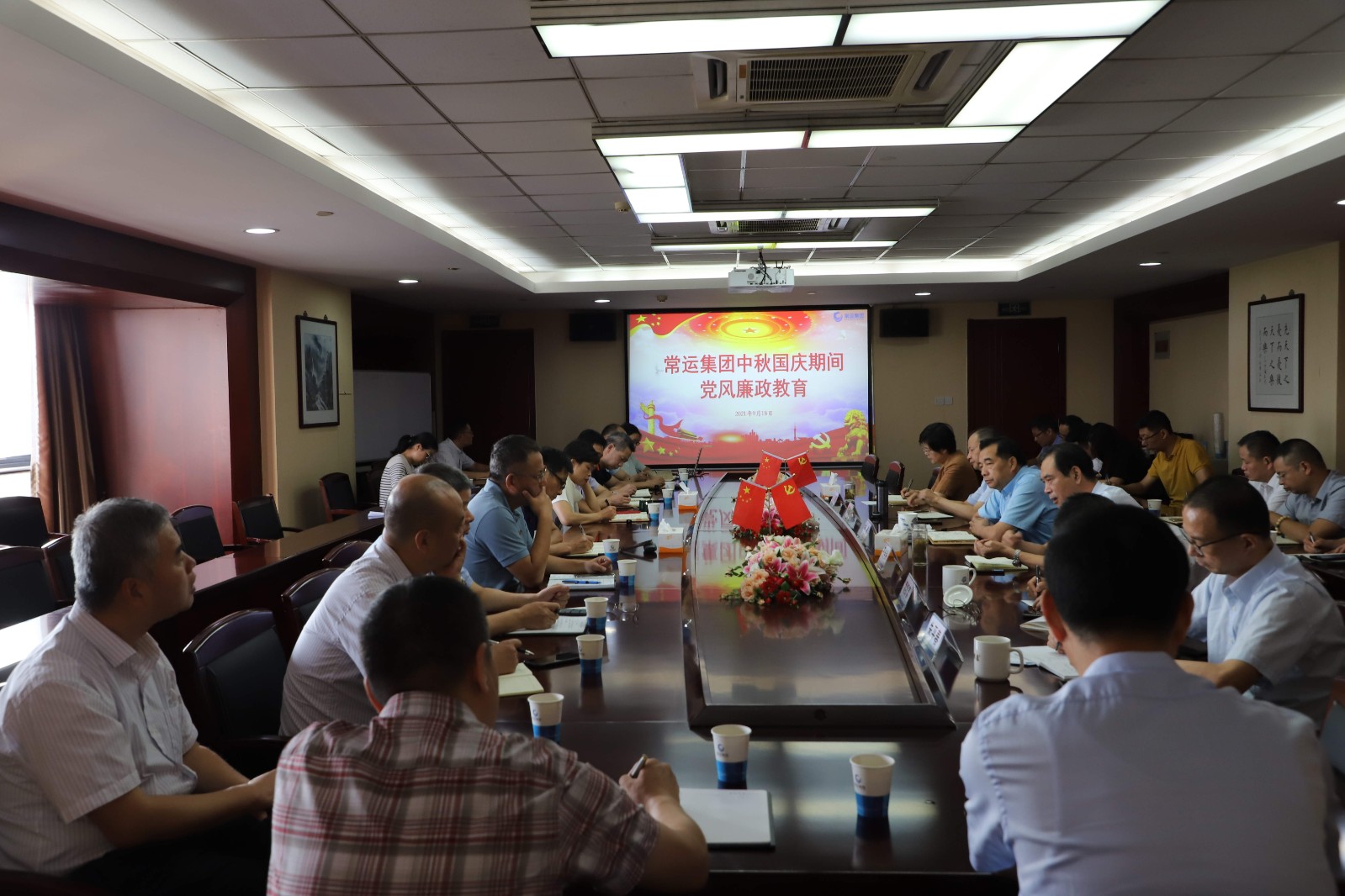 9月18日上午,常运集团在三楼会议室组织召开2021年“中秋、国庆”双节运输动员暨党风廉政教育会议,集团公司领导、机关各部室负责人、各基层单位党政主要领导参加会议。董事长兼总经理谢星主持会议。