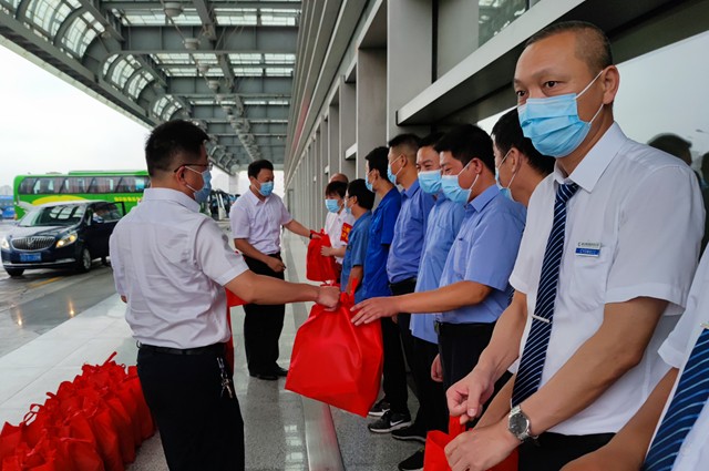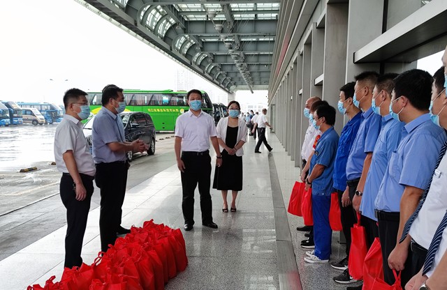 8月12日上午,市交通运输局领导薛晔、曹建中一行至常州汽车总站,向高温下坚守防疫一线的工作人员进行慰问。集团公司董事长兼总经理谢星,党委负责人、纪委书记兼工会主席王连保等陪同。
