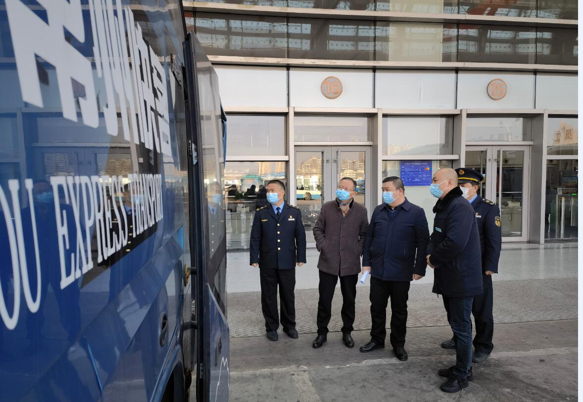 1月12日上午,省交通运输综合执法局调研员周黄德一行至常州汽车客运站就道路运输疫情防控进行督导检查,市交通运输执法支队副支队长王丁柱,集团公司副总经理费轩龙及站务分公司负责人陪同督查。