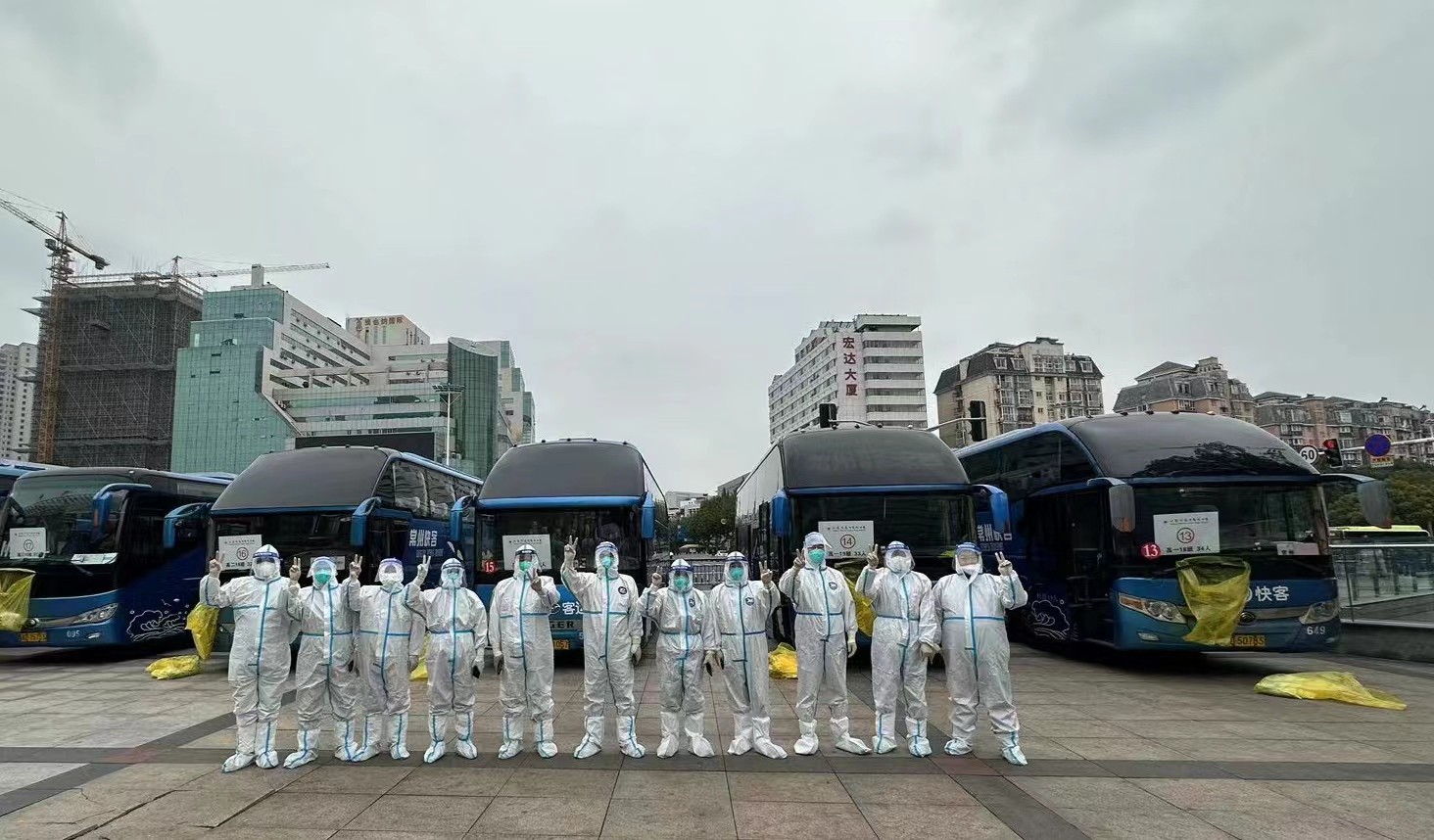 11月14日,集团公司组建19辆转运大巴,顺利把西藏至常州专列上的600余名学生分别闭环转运至4个隔离酒店。
