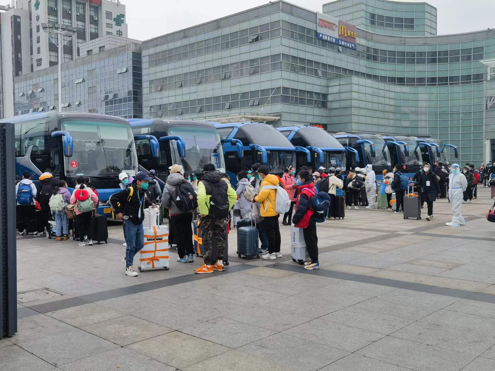 当天,19辆转运大巴早上8:00准时出发,到达火车站南广场后,在调度员的指挥下,整齐停放在引导处,原地等待。10:11,专列进站,600多名西藏学生陆续出站,由驾驶员引领至对应的大巴车,并在驾驶员的帮助下,安放行李、更换口罩、登车入座。仅用30分钟,所有学生全部安排妥当,转运大巴逐一开往对应酒店。一路上安全平稳,到达酒店后,驾驶员指挥学生有序下车,拿好行李,跟酒店做好交接,办理移交手续。随后,车辆、驾驶员立即做消杀,下午2点左右,大巴全部返回,转运任务圆满完成。