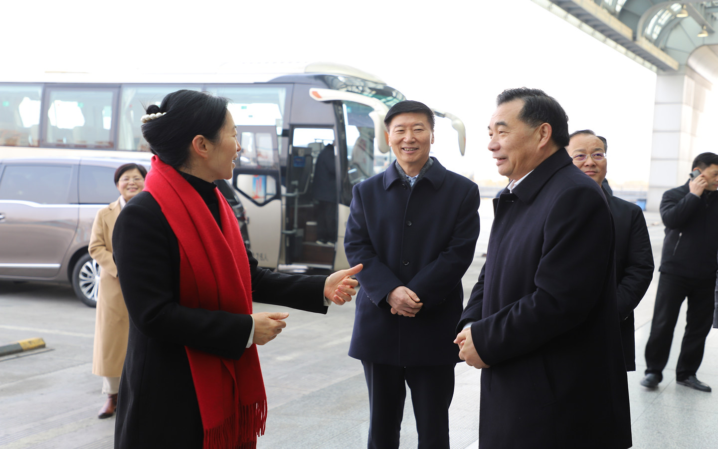 2月8日上午,常州市市长盛蕾一行至常州汽车客运站走访慰问并督查保供应保安全保畅通工作,市相关领导,市交通运输局党委书记、局长薛晔,副局长周旭栋;集团公司董事长谢星,党委书记、总经理朱平春,副总经理刘旭霞、印志峰陪同督查。