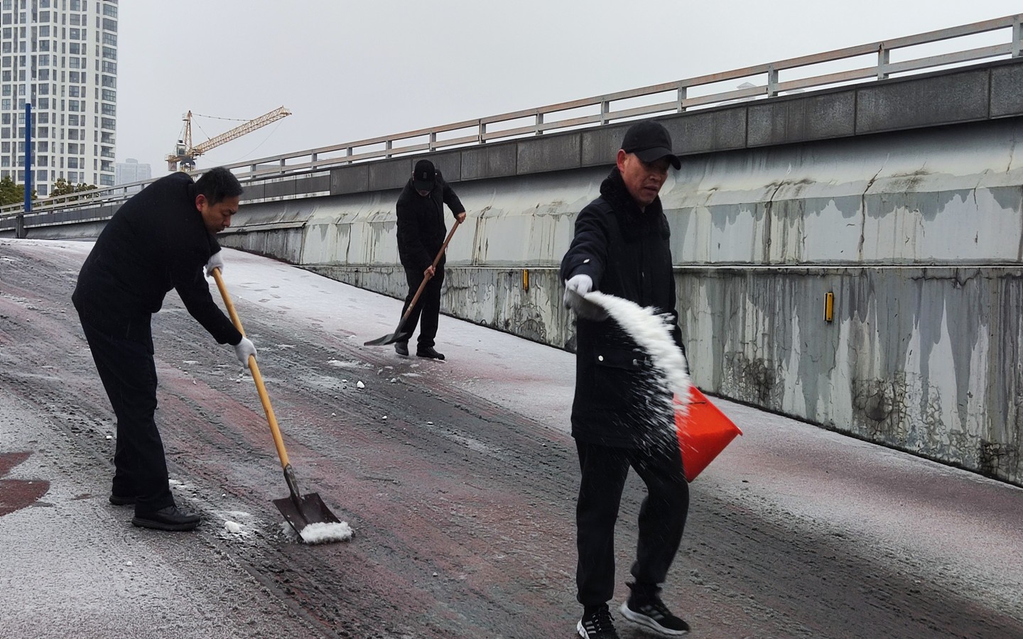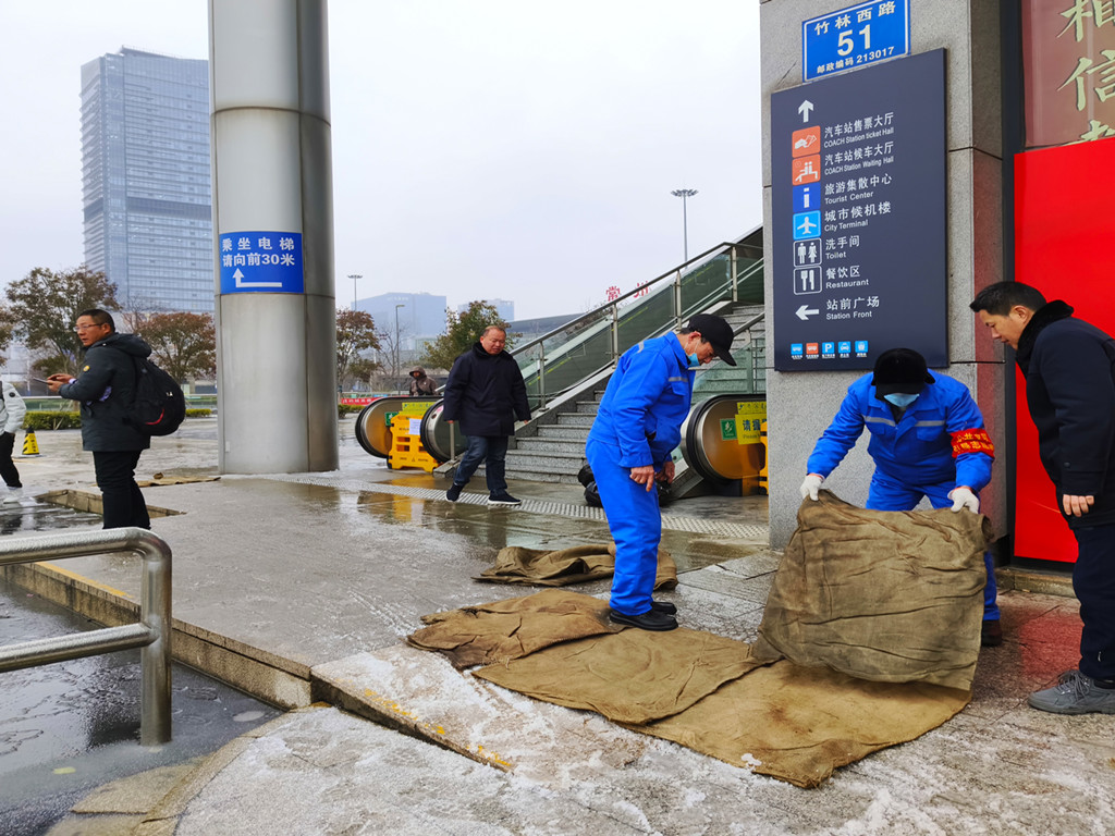 公司通过GPS动态监控平台掌握营运车辆在途状况,及时提醒路况信息,要求减速慢行。为预防雪后湿滑及冰冻,常州各车站组织人员在旅客进出口处、电梯口、车辆上下坡处等重点结冰区域撒盐并铺设防滑麻袋,在进站候车扶梯、楼梯处做好安全提醒,全力保障旅客出行安全。23日凌晨时分,公司安管人员带队上路上线,查看道路情况,并根据探得的道路状况,对班次作出了调整,确保春运期间旅客的出行安全。