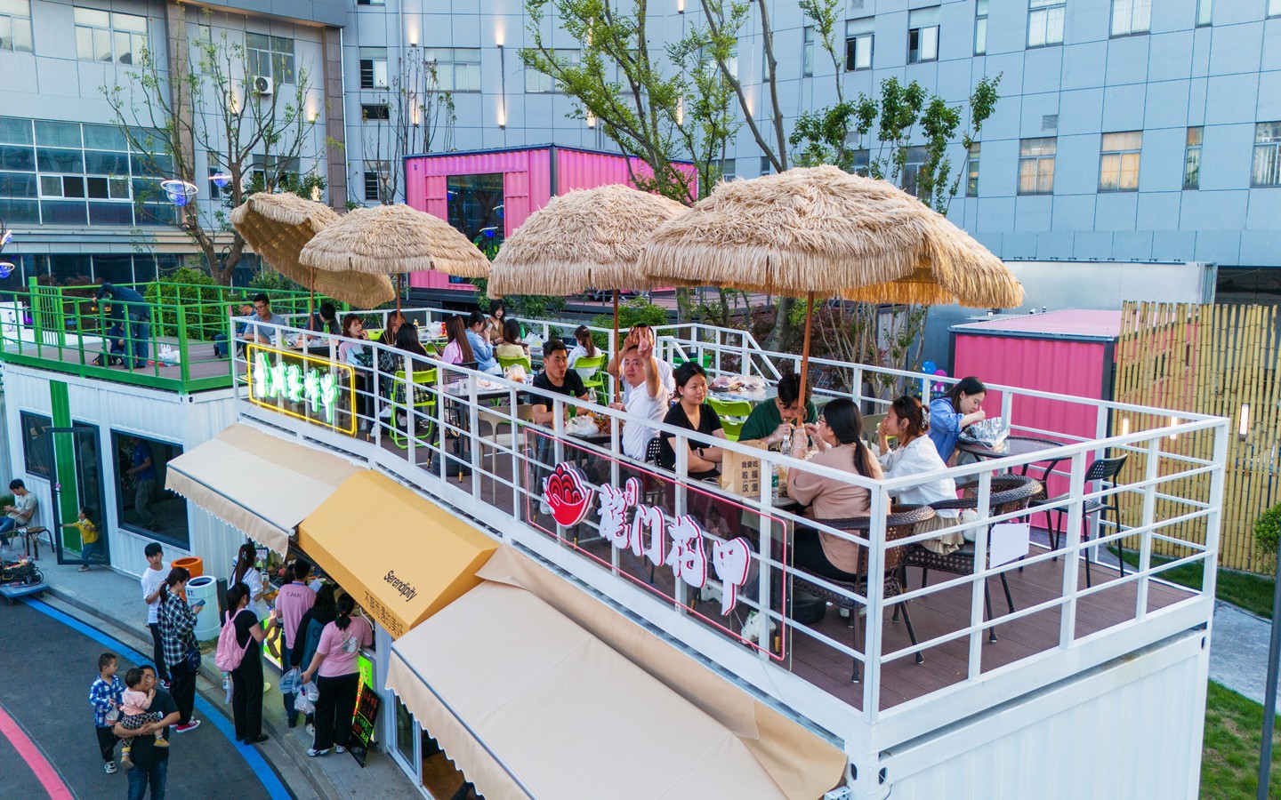 的核心衔接点;身处长三角知名产教城融合示范区,紧邻常州大学城、科教城。街区占地约120亩,已投资1.5亿元,定位“Z世代”青年网红潮集地,切中文商旅融合、夜经济、她经济,通过创意餐饮、文创市集、微醺空间、日咖夜酒、潮流运动、艺术研学、宴会中心、网红书屋、亲子文娱、城市营地等多功能社交业态,立足打造长三角城市微度假特色目的地与文旅新地标。作为开放式城市公园风格,街区分“东中西”3大区域、7块生活版块,聚集了创意餐饮、文创市集、潮流运动、艺术研学、亲子文娱、城市营地等多功能社交业态。其中,“运动+艺术”双活动广场超1万平方米,汽车、森系街区、无界秀场、国际友人俱乐部、青年情绪引力场等创意主题空间将陆续上线。
